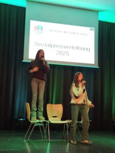 Zu Beginn der Veranstaltung eröffnete Schulleiterin Anna Reimann die Preisverleihung an der Anne-Frank-Schule. In ihren einleitenden Worten hob sie den besonderen Charakter des Sozialpreises hervor: Er würdige Menschen, die Verantwortung übernehmen, Solidarität leben und zur Stärkung der Gesellschaft beitragen. Zugleich betonte sie den Leitgedanken des diesjährigen Wettbewerbs – die Prävention von Armut und sozialer Ausgrenzung – und stellte heraus, wie eng dieses Thema mit dem Selbstverständnis der Anne-Frank-Schule verbunden ist. Als „zukunftsorientierte, weltoffene und sozial geprägte Europaschule“ stehe die AFS für Demokratiebildung, Potentialentfaltung und selbstverständlich für gelebte Inklusion. Vielfalt begreife man hier als Stärke und Gemeinschaft als zentrale Aufgabe des schulischen Zusammenlebens.